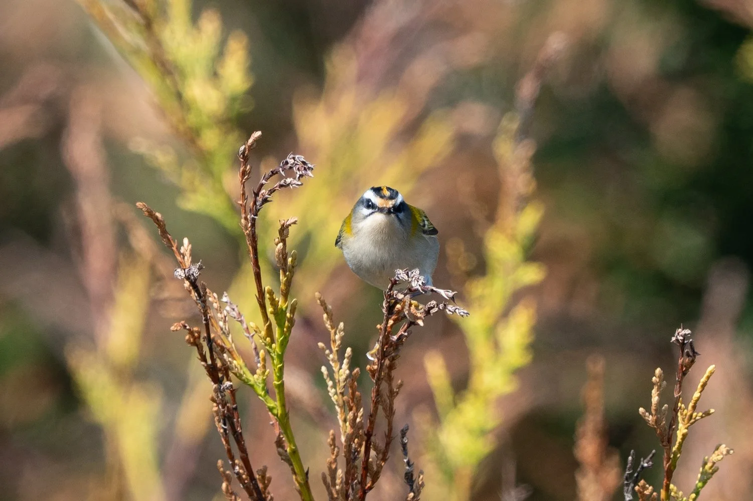 Next stop was canal bushes and canal scrape but it was quiet there but news of a firecrest near The Blue Bell had us heading back up to the car park. The firecrest showed almost immediately and was displaying and singing for most of the time.